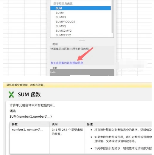 9、若我们对某个函数,公式不怎么会用,可以单击选中这个函数后,单击下方的帮助信息,就会弹出详细的说明的。