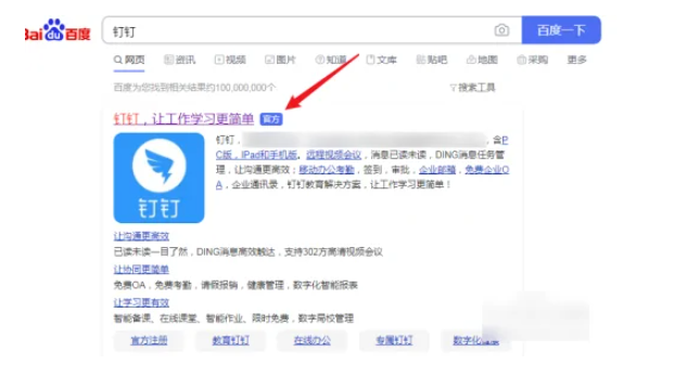 2、搜索钉钉官方网站,点击打开。
