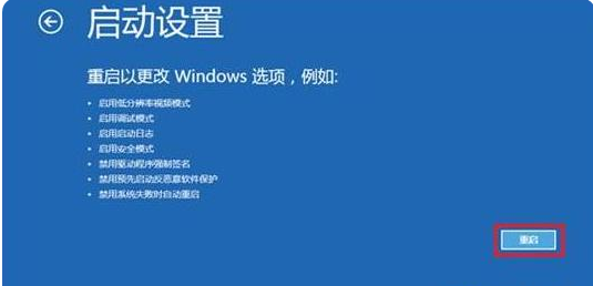 5.然后我们在出现的启动设置中,点击"重启"按钮,就可以正式进入高级启动模式。