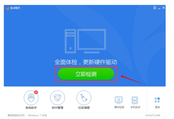3、打开软件对电脑进行检测,点击“立即检测”。