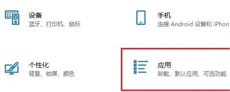 2、在弹出的设置页面中选择应用。