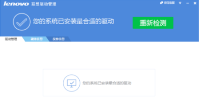 4. 启动联想驱动管理后,点击“一键检测”,检测时,建议不要进行其他操作,以免受到干扰。