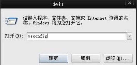 2、 然后,在运行窗口中,输入“msconfig”并回车