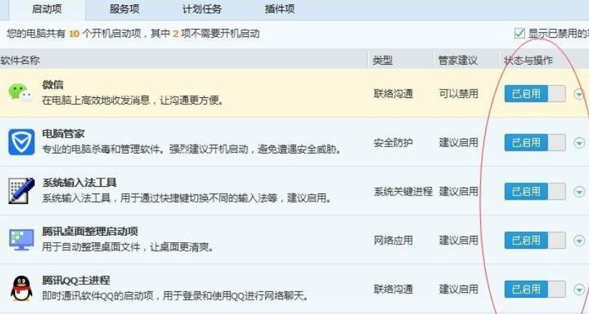 3、 接着,你就可以根据自己的需要,来启用和禁用window开机启动项了