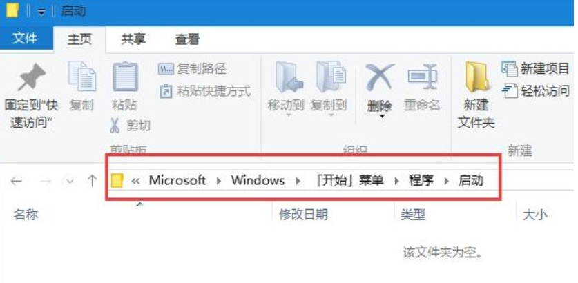 2、 如果你觉得路径点击很麻烦,可以直接复制路径到地址栏,如图所示,就可以打开系统启动文件夹