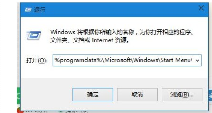 4、 也可以输入“%programdata%\Microsoft\Windows\Start Menu\Programs\Startup”回车即可打开启动文件夹