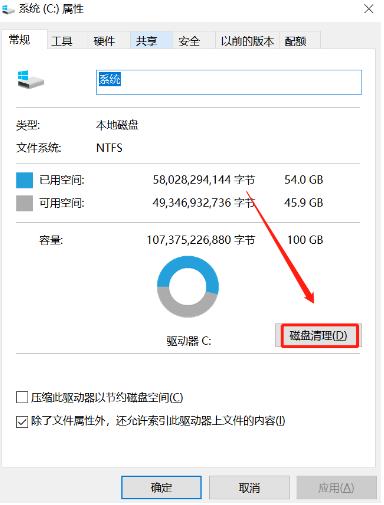 2、点击磁盘清理即可。