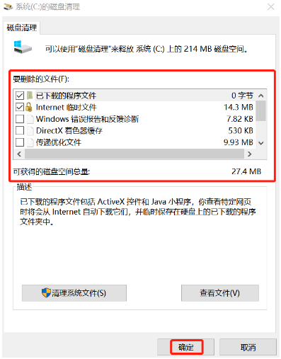 3、最后就可以选择需要删除的文件,点击确定,耐心等待磁盘清理完成就可以啦。