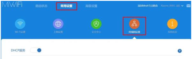 2、登录进小米路由器后台,点击上面菜单栏的常用设置,然后再点击局域网设置按钮。