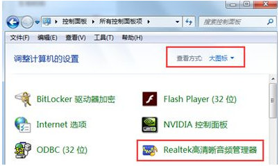 1、点击控制面板,点击realtek高清晰音频管理器;