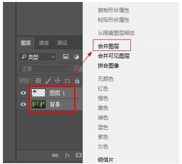 方法一:在第一张图层点击鼠标右击,选择向下合并 ,即完成第一种合并图层的方法。