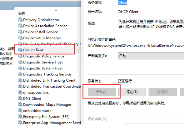 4、在弹出的窗口,点击启动类型为自动或者启动,然后点击“确定”,DHCP便成功打开了。电脑开启了DHCP Client就表示DHCP客户端开启了。