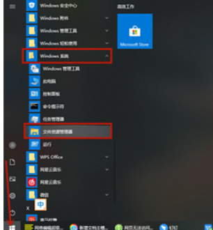 我们首先点击电脑左下角Win图标,再点击Windows系统后,点击文件资源管理器即可。