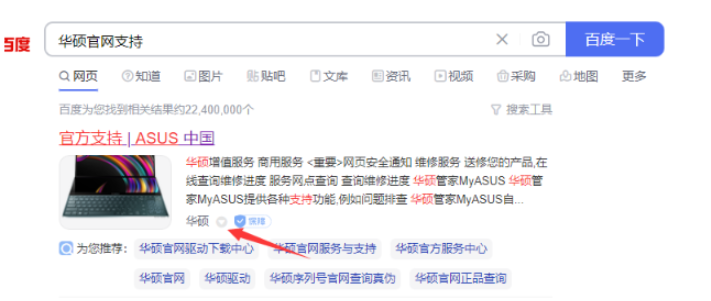 1、首先在网上搜索华硕官网支持,找到对应的官方支持地址进入。