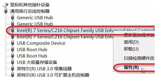 3、鼠标点击usb接口,打开“属性”。