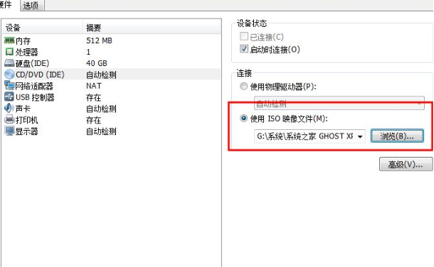 8、回到vm虚拟机主页面,点击CD/DVD(IDE)。