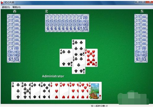 4、本轮出现红桃牌的话,右边玩家因为没有没花花色的牌选择出红桃牌等,另外三家梅花牌里最大的玩家就会得这1分,就是梅花六的用户。