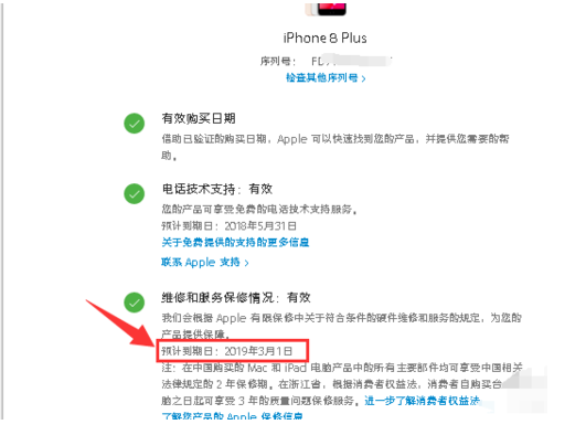 6、此时就可以查询到iPhone手机的详细信息以及到期时间。