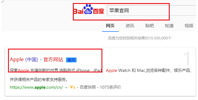 1、首先去浏览器搜索苹果官网,点击进入官网。