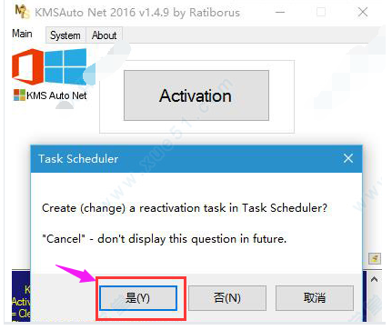 5、稍等片刻后win10系统激活完成,弹出想要的提示框提示激活成功,点击是即可。