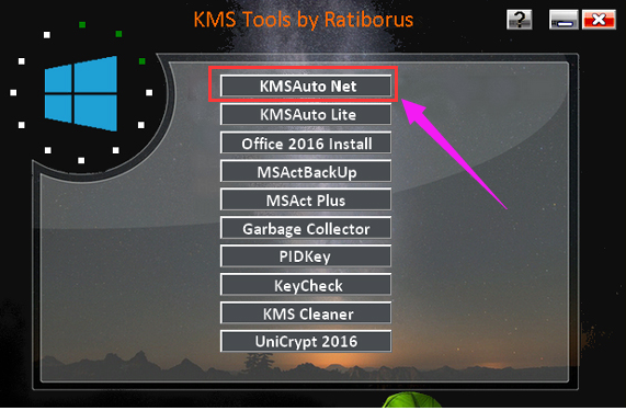 2、点击软件主页面上的KMSAuto Net进入下一步。