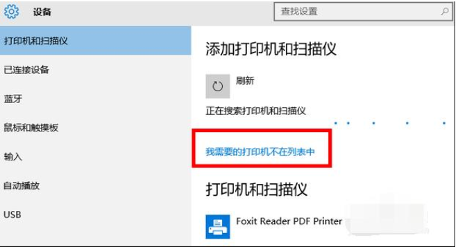 4、等待一会,点击"我需要的打印机不在列表中"。
