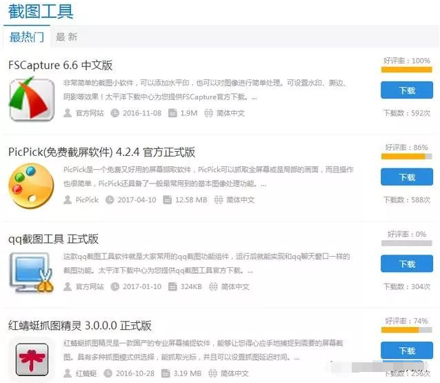 目前可用的截图软件有很多,我们只需在网上找到可靠好用的软件下载安装后即可使用。这里推荐大家使用FSCapture中文版,非常小巧,可以添加水平印,也可以对图像进行简单处理,非常的好用哦。以下是一些好用的工具榜单: