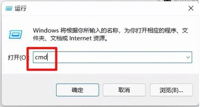 1、使用快捷键“Win键”+“R”打开运行,输入“cmd"回车确定。
