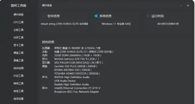 以上的方法都是电脑本身自带的功能。对于有网的情况下,其实第三方工具是最简单直接的,而且看的也很清楚。比如说常用的【鲁大师】,【图吧工具箱】软件等。