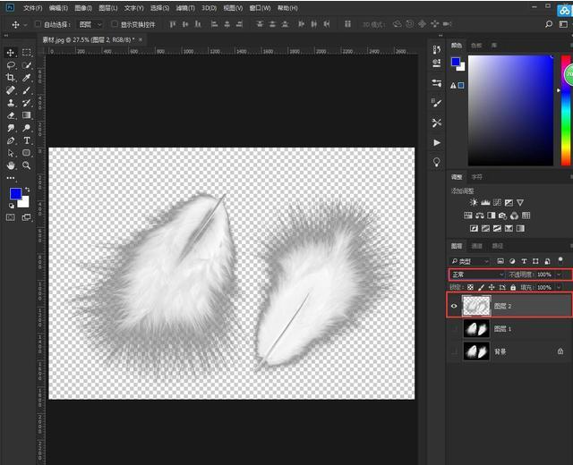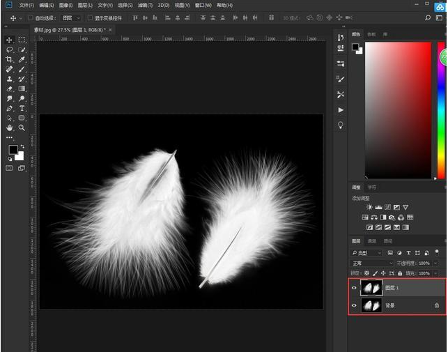10、最后加个背景,羽毛就完整抠出来了,然后新建图层,把抠好的图片转移到新图层即可。