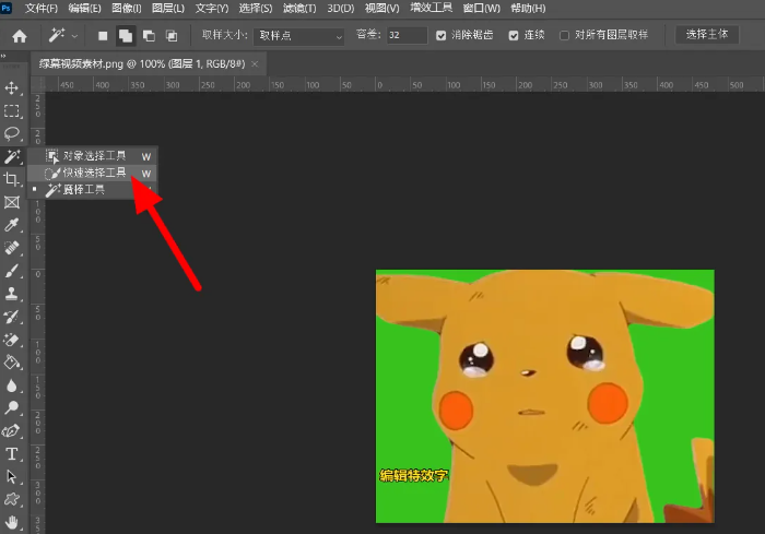1、接下来再说下ps蒙版抠图的方法。在ps中导入需要处理的图片,选择快速选择工具。