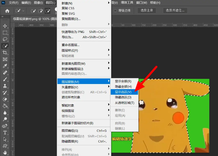 4、点击显示选区,这样就蒙版抠图成功。