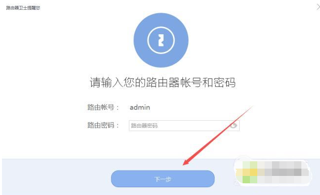 2、打开软件,在出现的页面输入自己的路由器密码点击下一步。