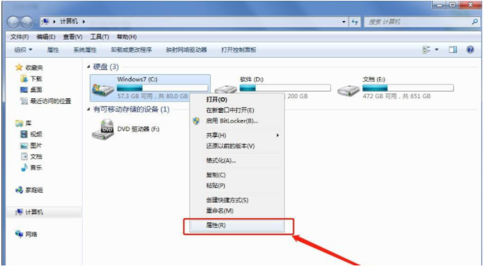 1.鼠标右键点击电脑“C盘”,选择“属性”。
