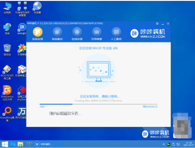 6、在pe系统内,软件将会开始安装win10系统,安装成功之后,点击重启电脑。
