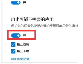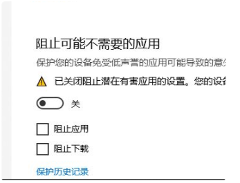 4、在“基于声誉的保护”页面中,在“阻止可能不需要的程序”栏目中,我们将此功能关闭。