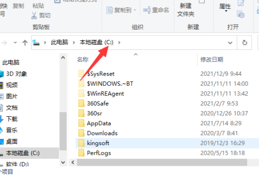 2、双击c盘打开之后既可以进入c盘根目录了。