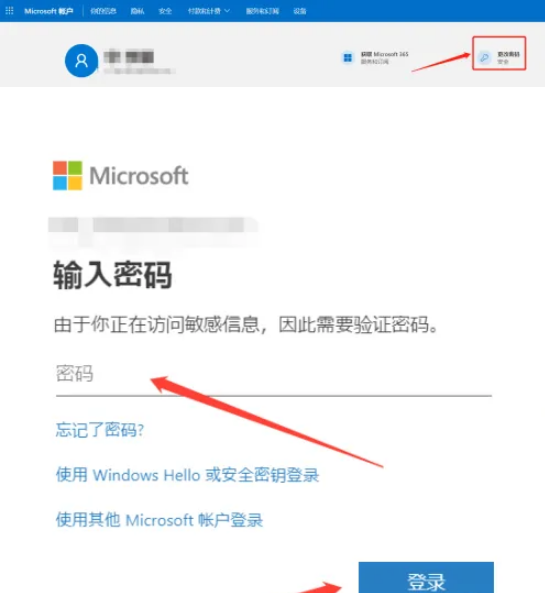3.在Microsoft账户页面点击“更改密码”,跳转到Microsoft账户登录,输入密码,点击“登录”。