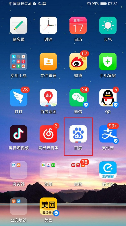 1、打开手机之后,点击手机百度,登录百度账号即可。