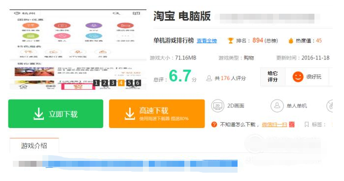 淘宝下载安装是一款购物类的软件,它依托淘宝网强大的自身优势,整合旗下团购聚划算、品质保证淘宝商城、商品品类丰富的淘宝集市为一体,为用户提供更方便快捷流畅、随时随地进行移动购物的完美体验,更具有搜索、比价、物流订单查询、安全支付宝支付、收藏评价、我的动态、导航、打折促销、手机专享、购物车合并付款等功能。感兴趣朋友快来体验淘宝下载安装电脑版。