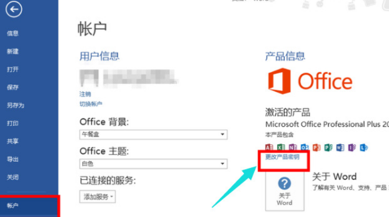 office激活密钥使用方法是很简单的,只需要我们找到office的账户信息就能看到密钥的位置了,具体步骤图解如下,我们接着看吧。