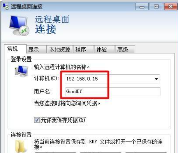 6、输入计算机名(IP地址)和用户名,点击“连接”按钮。