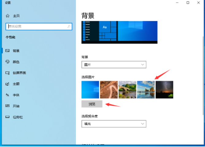 2、再点击背景,就可以选择系统自带或者点击“浏览”自定义背景图片。
