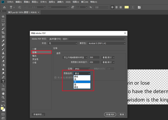 别疑惑,ps也可以压缩PDF文档吗?当然是没啥问题滴!“ps”依旧还是你所认为的“图片处理”工具,不过Adobe可给它内置了许多有趣的“小彩蛋”工具,其中便包括“PDF压缩”模块,提供四种图像品质选择(具体如图所示)、还能手动调整像素/尺寸大小,不过就是在操作上,会相对繁琐些,所以想了解相关操作的小伙伴,不妨可以求助“度娘”哦!