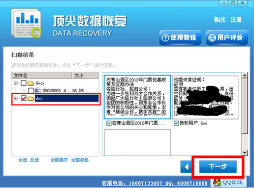 三,扫描结束后,选中要恢复的文件,点击下一步