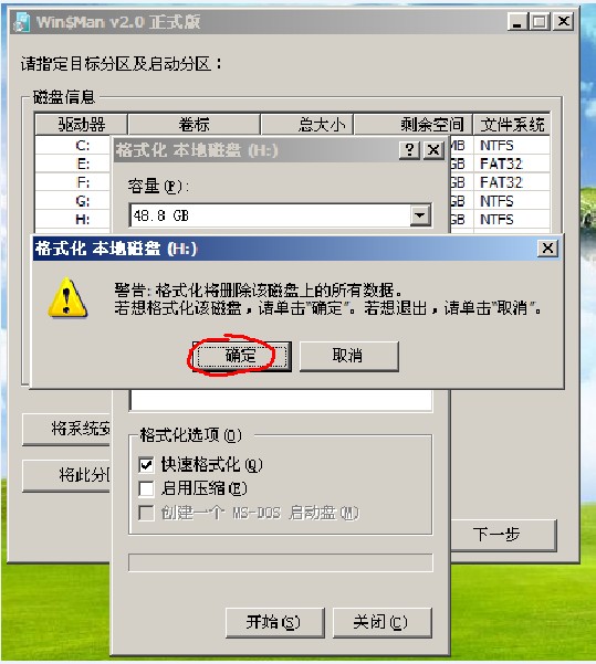 13、点击格式化后,再次点击将系统安装你刚才选中的盘符