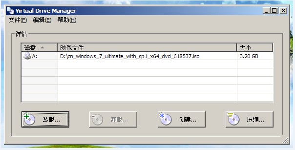 6、装载映像文件:点击装载,找到你的U盘上的ISO文件,路径浏览记住虚拟盘符为A,确定后,最小化放在任务栏边