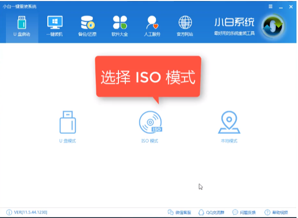 1、 插入U盘打开运行U盘启动盘制作工具,切换到“U盘启动-ISO模式”