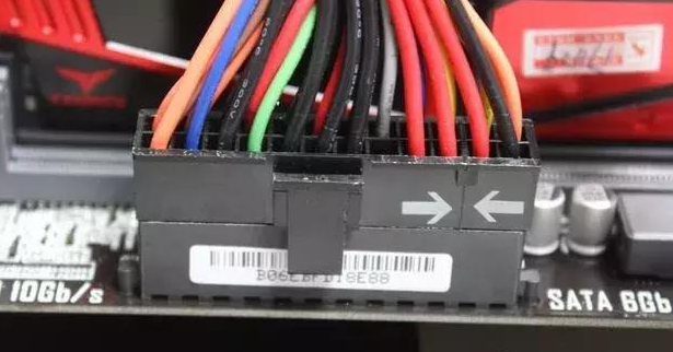 主板接口非常容易辨别,找到24个针的接口,按正确方向插入即可。