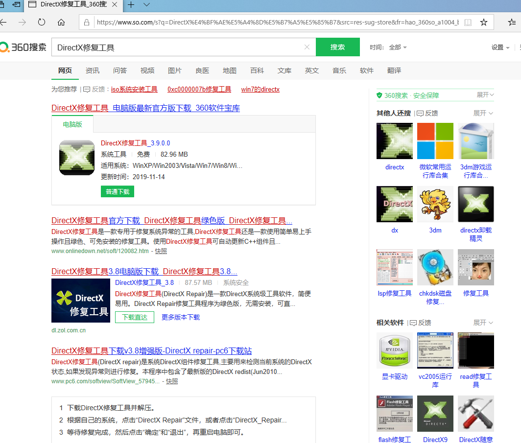 1.首先百度DirectX修复工具,然后下载安装。